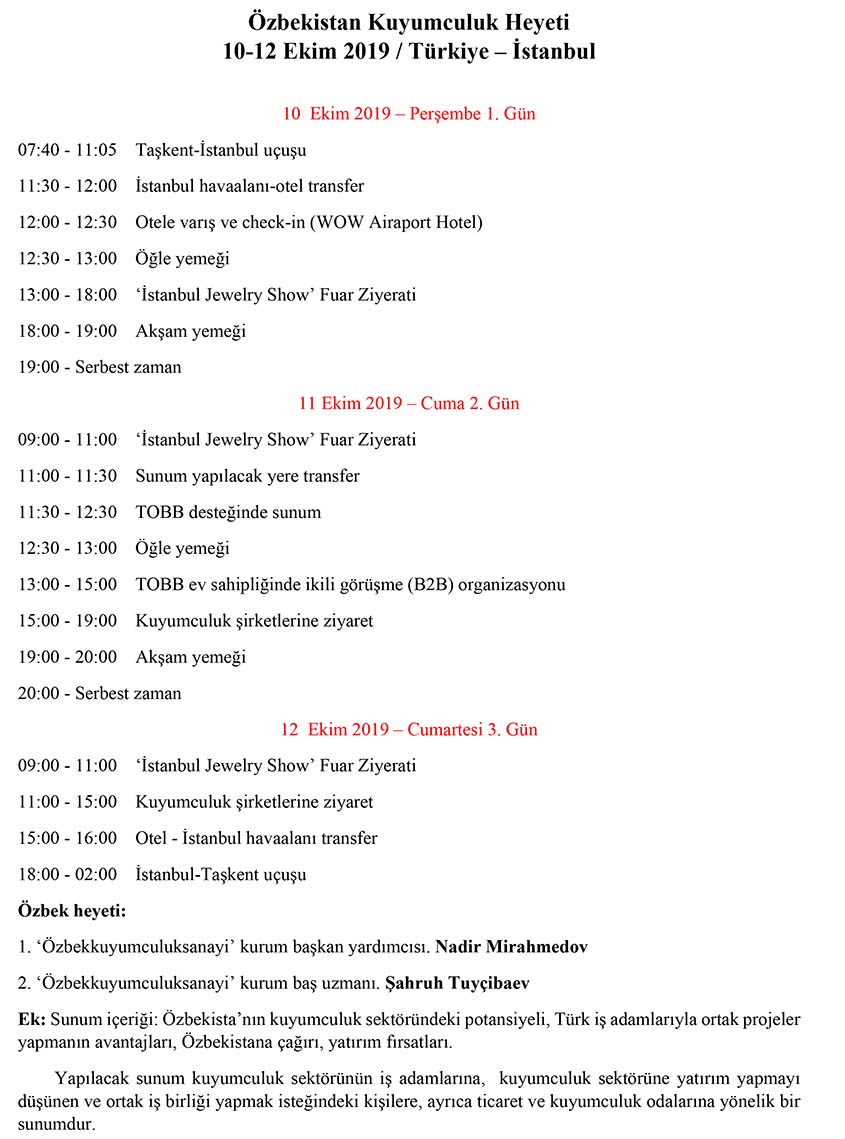 ÖZBEKİSTAN TÜRKİYE KUYUMCULUK FORUMU