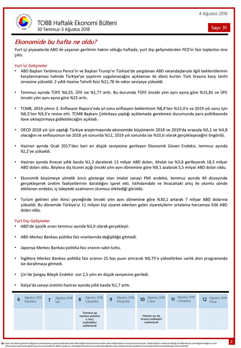 TOBB HAFTALIK EKONOMİ BÜLTENİ 31
