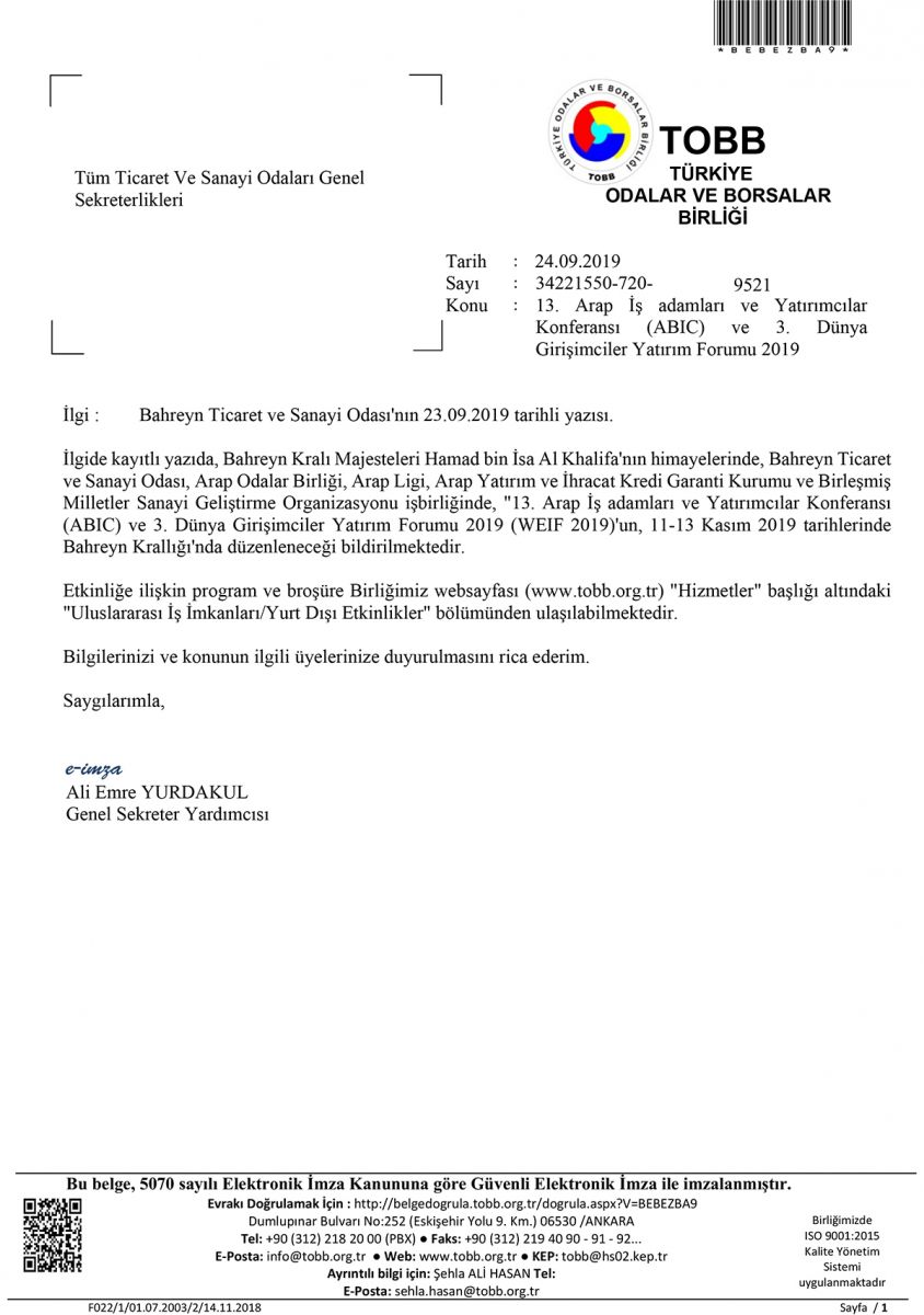 13. ARAP İŞ ADAMLARI VE YATIRIMCILAR KONFERANSI (ABIC) VE 3. DÜNYA GİRİŞİMCİLER YATIRIM FORUMU 2019
