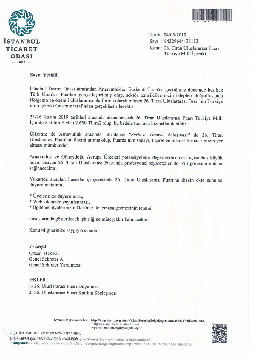 26. TİRAN ULUSLARARASI FUARI TÜRKİYE MİLLİ İŞTİRAKİ