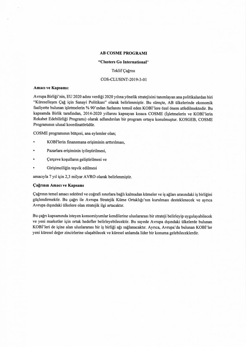 AVRUPA BİRLİĞİ İŞLETMELERİN VE KOBİ'LERİN REKABET EDEBİLİRLİĞİ (COSME) PROGRAMI