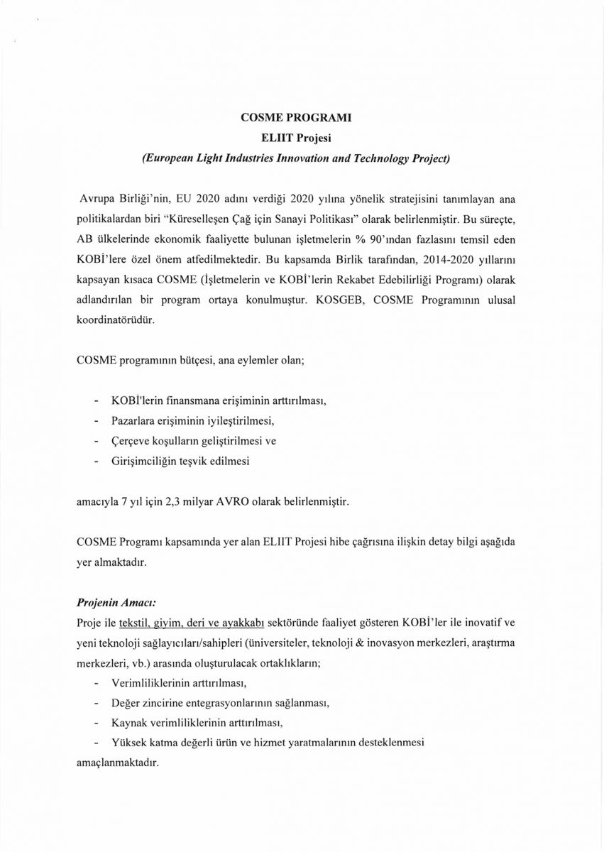 AVRUPA BİRLİĞİ İŞLETMELERİN VE KOBİ'LERİN REKABET EDEBİLİRLİĞİ (COSME) PROGRAMI