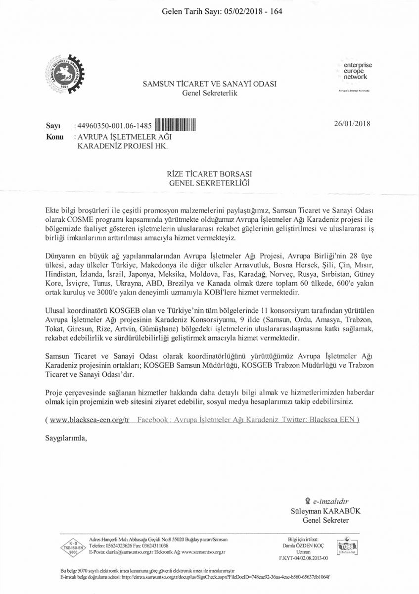 AVRUPA İŞLETMELER AĞI KARADENİZ PROJESİ HK.