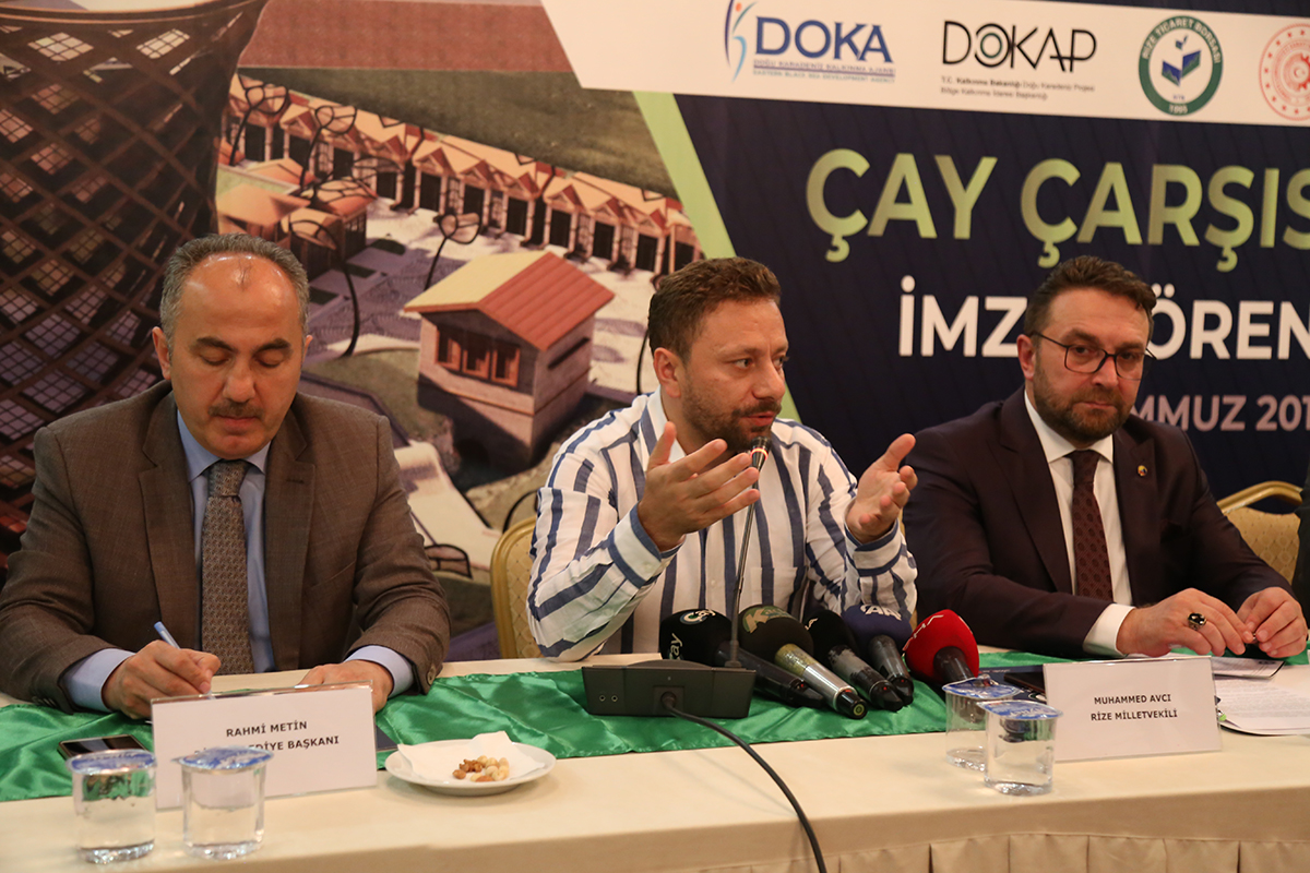 Doğu Karadeniz Kalkınma Ajansı’nın desteklediği, Çay Çarşısı Projesi için hazırlanan protokolü Rize Valisi Kemal Çeber, DOKA Genel Sekreteri Onur Adıyaman ve RTB Başkanı Mehmet Erdoğan imzaladı.
