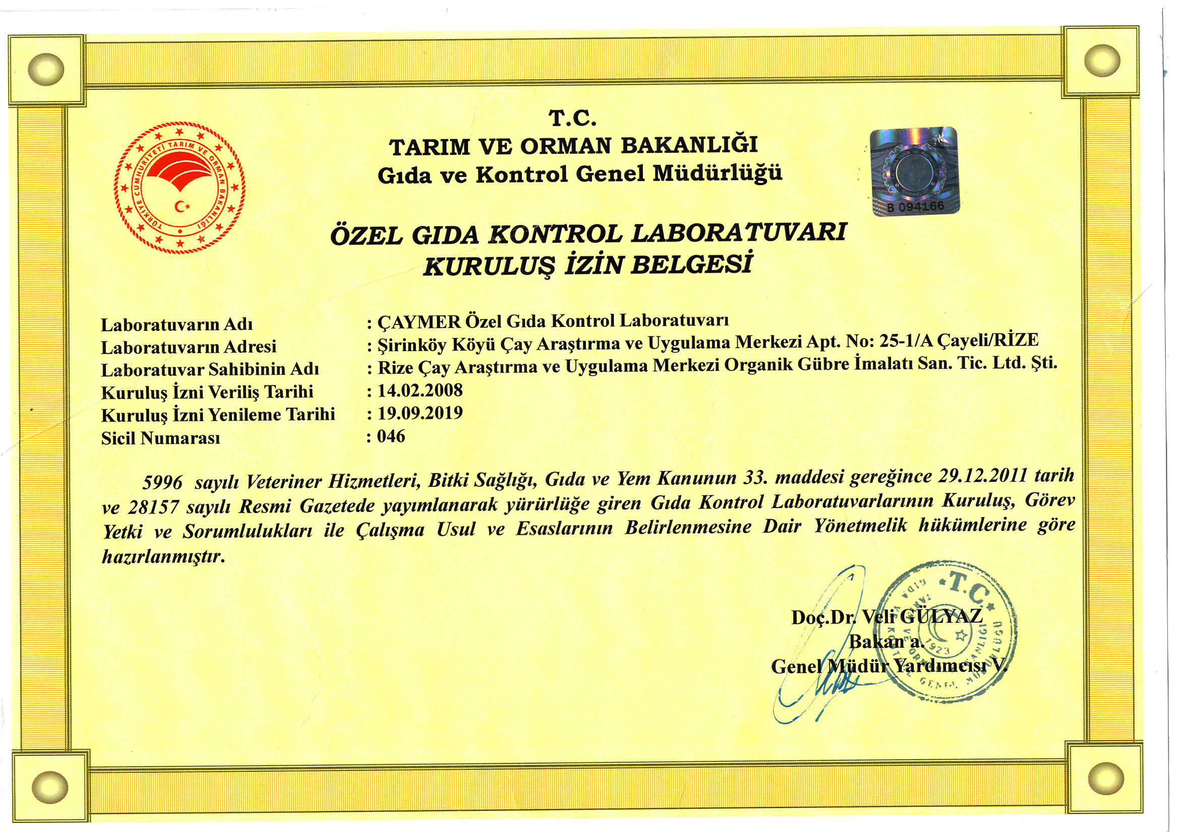 Bu hedefe paralel önemli projeler yürüten Borsamızın Rize Çay Araştırma ve Uygulama Merkezi (ÇAYMER) projesinin kapasitesini geliştirmeye devam ediyor. ÇAYMER bünyesinde bulunan ÇAYMER Özel Gıda Laboratuvarı Tarım ve Orman Bakanlığı Gıda Kontrol Genel Müdürlüğü'nde Kuruluş ve Çalışma iznini alarak çayda 21 analizde bakanlık onaylı bir laboratuvar unvanı kazanmıştır. Tüm siyah çay üreticilerinin bildiği üzere güvenilir laboratuvarlarda çayın analizi önem arz ediyor. Tüm bu çalışmalarda emeği geçen ÇAYMER Özel Gıda Laboratuvarı çalışanlarını tebrik eder bu hizmetin hayırlı olmasını temenni ederiz.