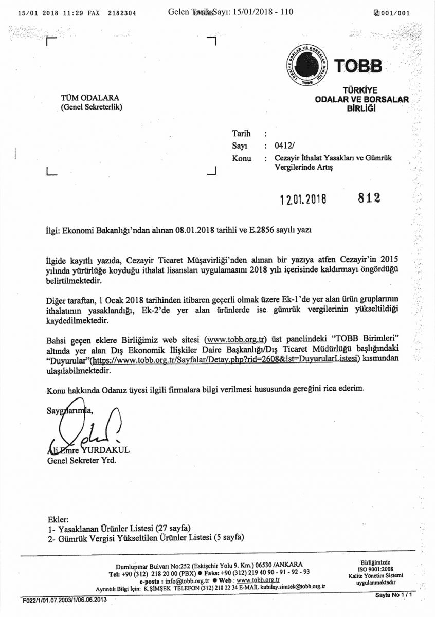 CEZAYİR İTHALAT YASAKLARI VE GÜMRÜK VERGİLERİNDE ARTIŞ
