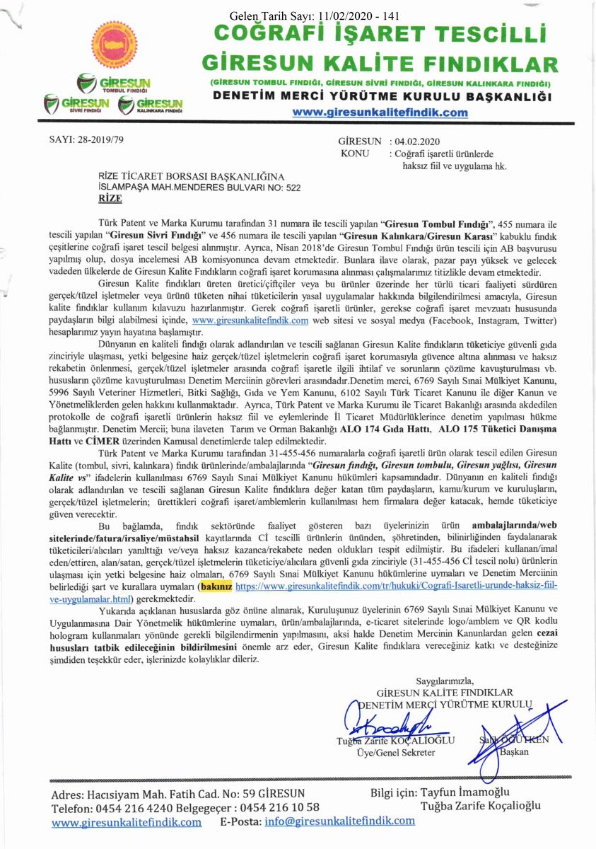 COĞRAFİ İŞARET TESCİLİ GİRESUN KALİTE FINDIKLAR