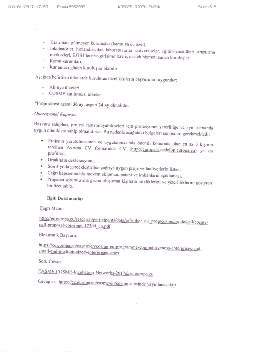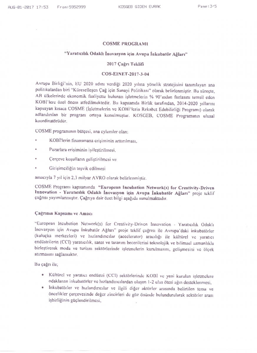 COSME Programı Çağrısı