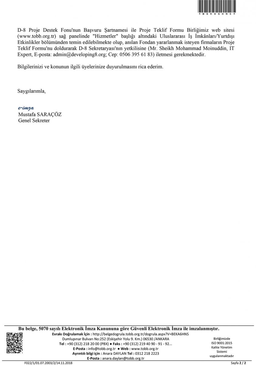 D-8 PROJE DESTEK FONU