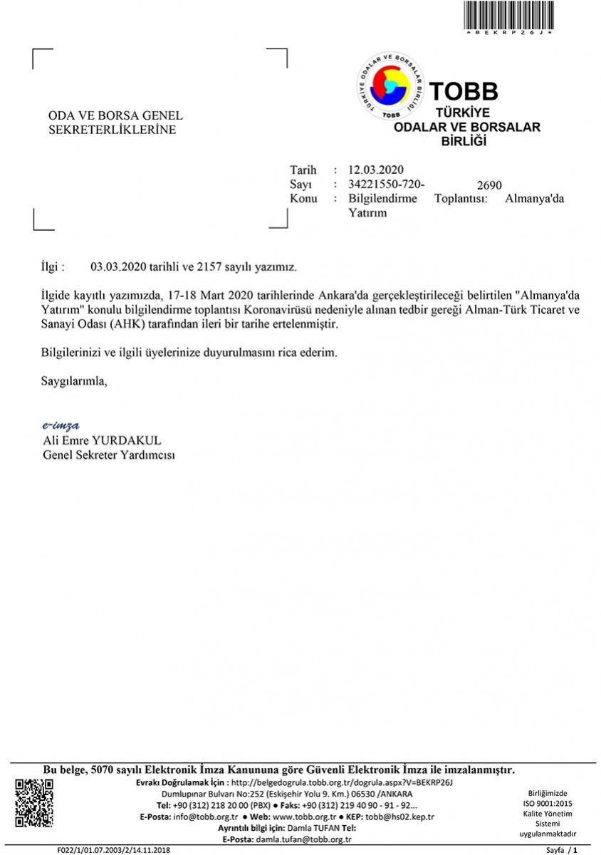 Erteleme: Almanya'da Yatırım Bilgilendirme Toplantısı