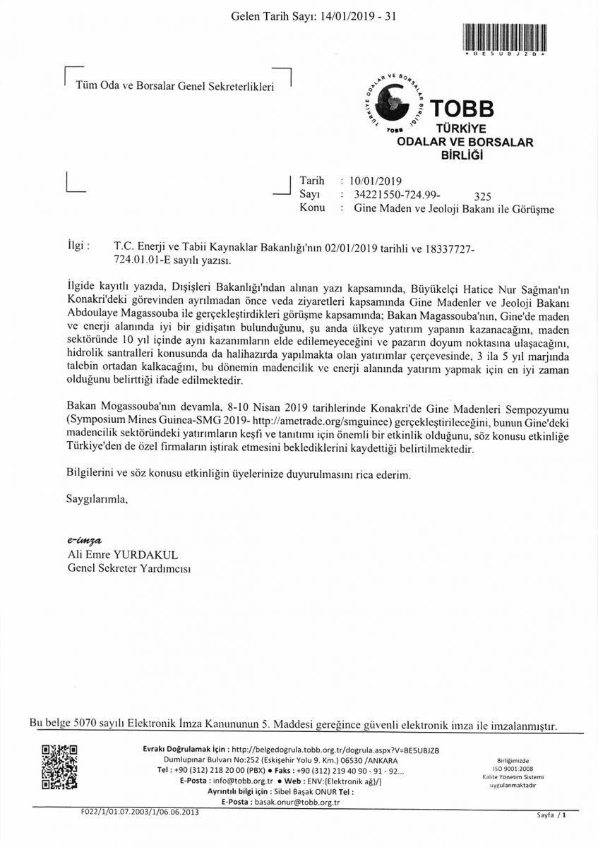 GİNE MADEN VE JEOLOJİ BAKANI İLE GÖRÜŞME