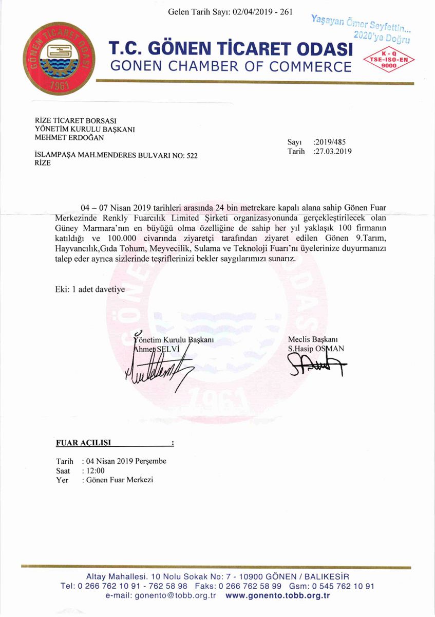 Gönen 9.Tarım, Hayvancılık, Tohum, Meyvecilik, Sulama ve Teknoloji Fuarı