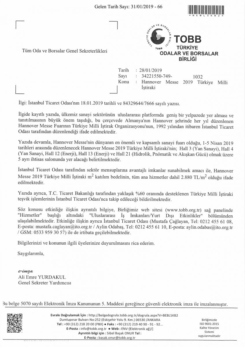 Hannover Messe 2019 Türkiye Milli İştirakı