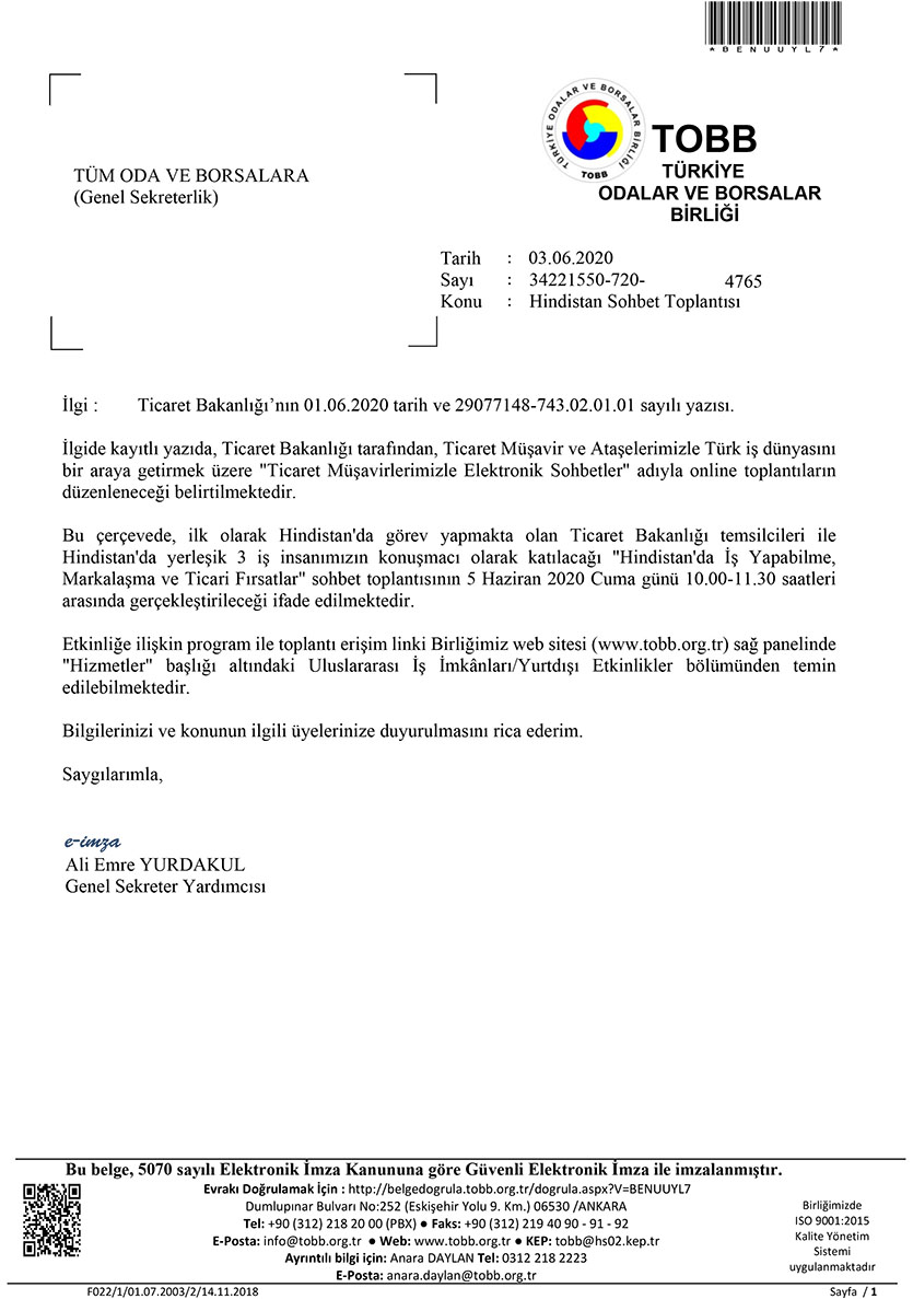 Hindistan Sohbet Toplantısı 5 Haziran 2020