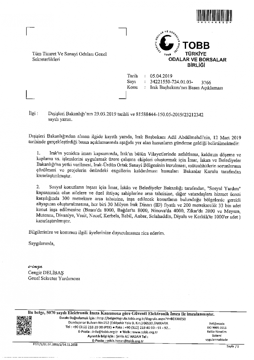 IRAK BAŞBAKANI'NIN BASIN AÇIKLAMASI