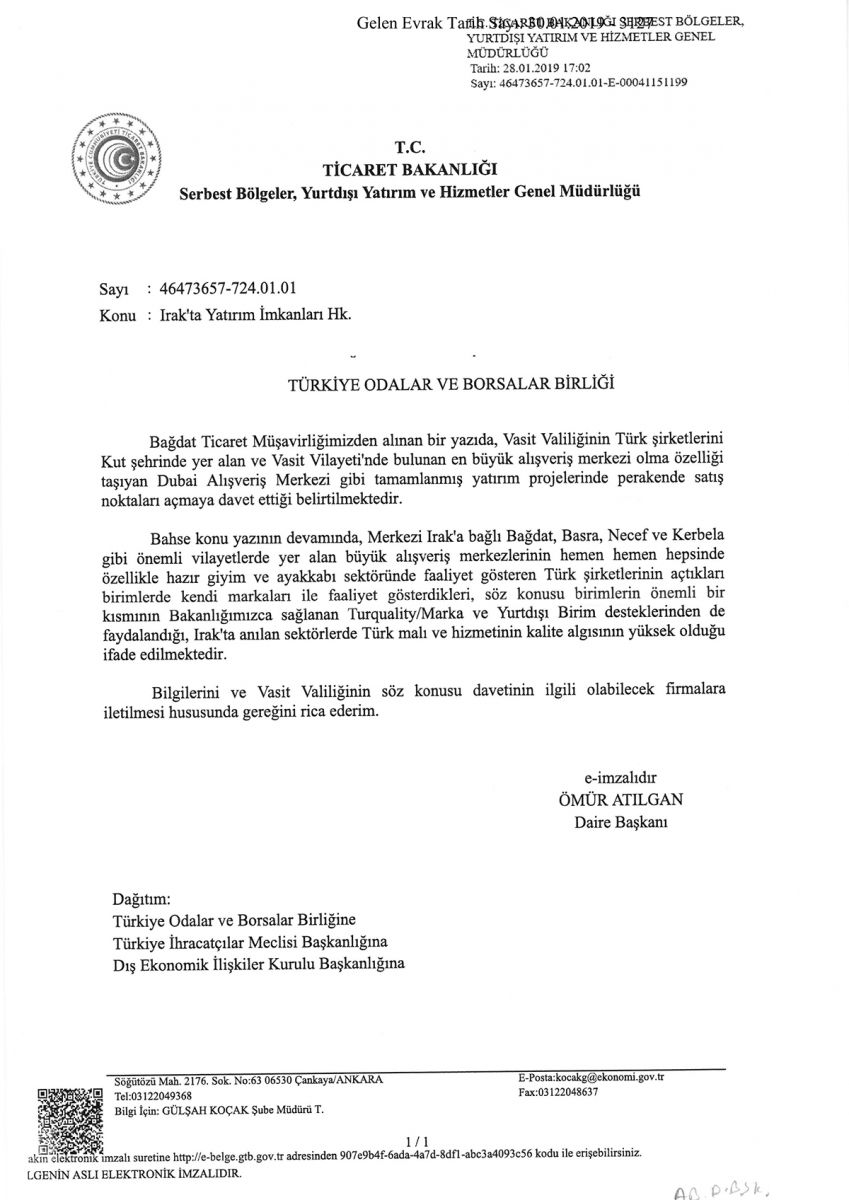 IRAK'TA YATIRIM İMKANLARI HK.