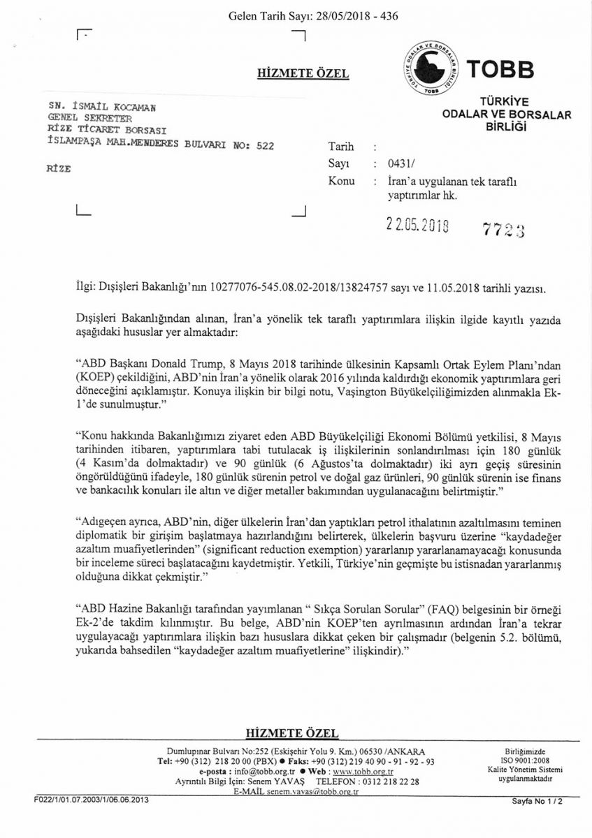 İRAN'A UYGULANAN TEK TARAFLI YAPTIRIMLAR