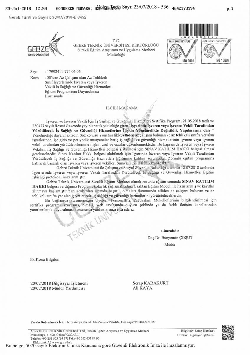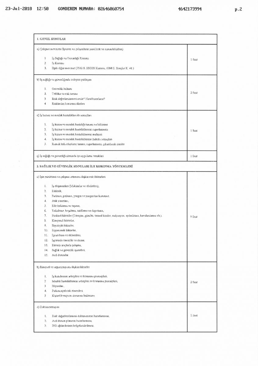 İŞ SAĞLIĞI GÜVENLİĞİ EĞİTİM PROGRAMI