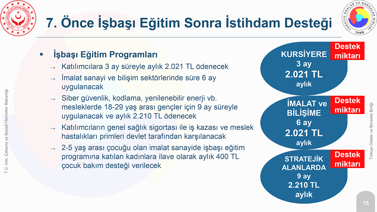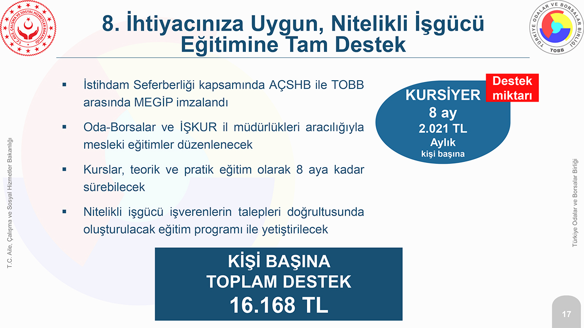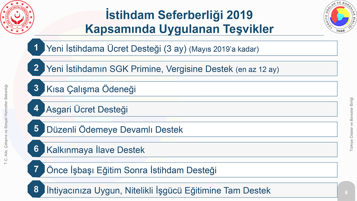 Sayın Cumhurbaşkanımız Recep Tayyip Erdoğan’ın çağrısı üzerine ülke genelinde “Burası Türkiye Burada İş Var” sloganıyla başlatılan istihdam seferberliği kampanyasında uygulanan teşviklerin içeriği.