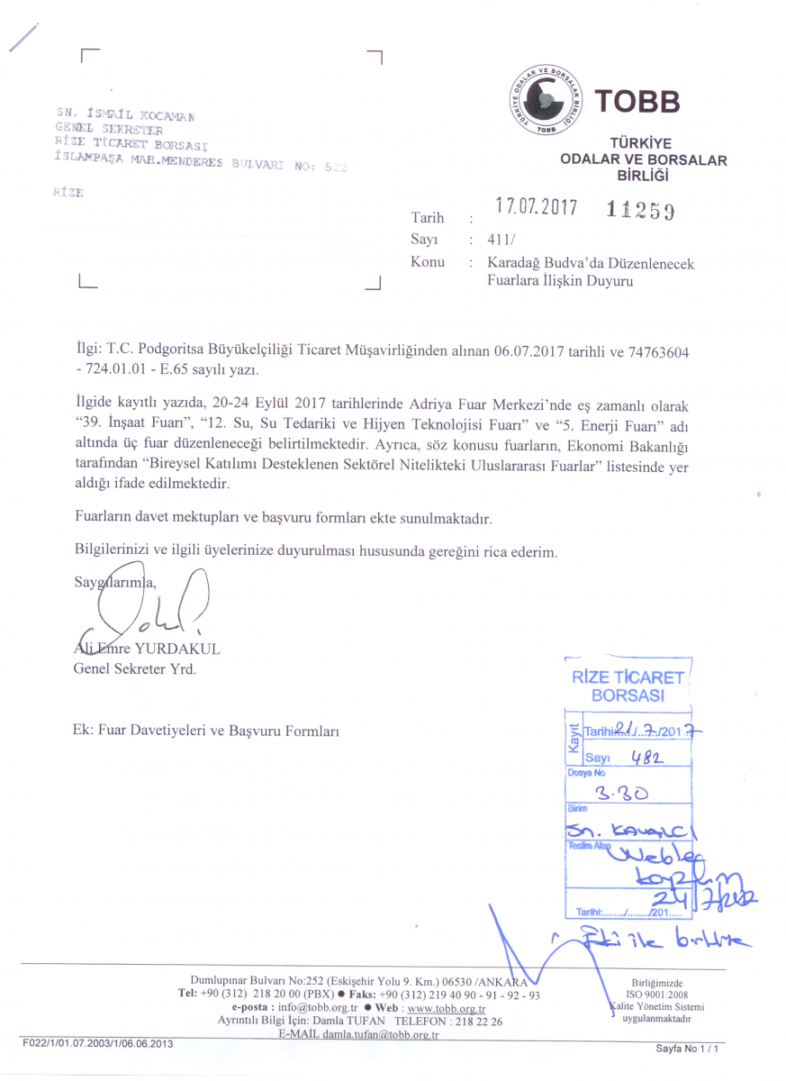 KARADAĞ BUDVA'DA DÜZENLENECEK FUARLARA İLİŞKİN DUYURU