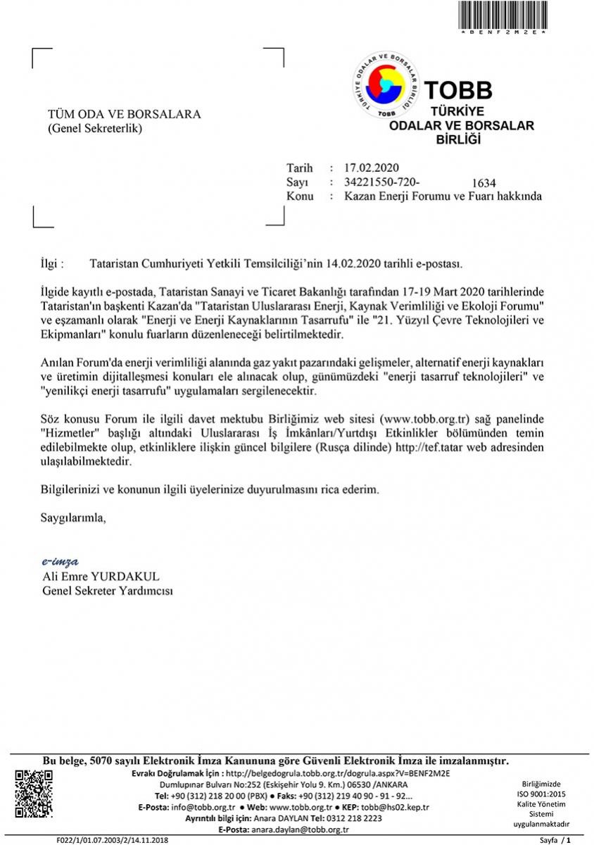 KAZAN ENERJİ FORUMU VE FUARI HAKKINDA DUYURU