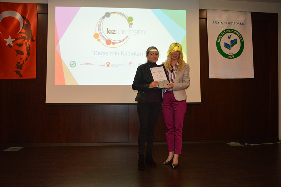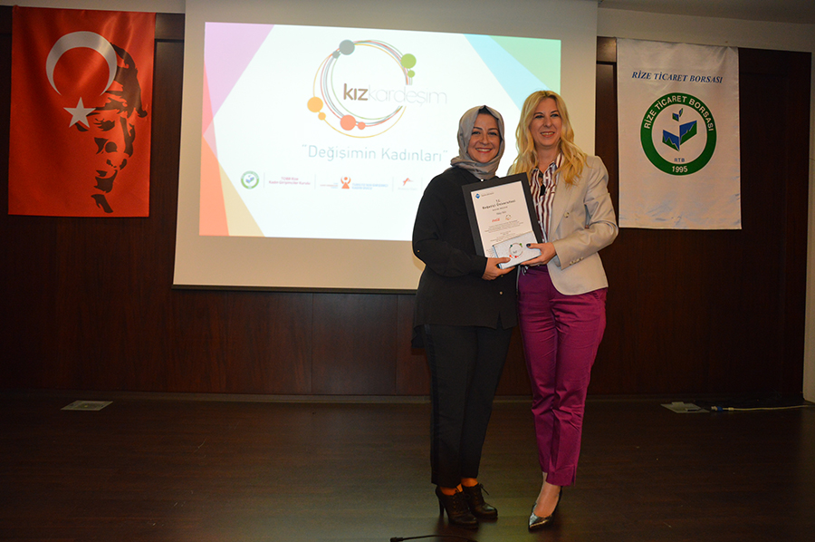 Rize Ticaret Borsası (RTB) ve TOBB Rize Kadın Girişimciler Kurulu ev sahipliğinde, Coca-Cola Türkiye ve Anadolu Vakfı destekleri ve Boğaziçi Üniversitesi Yaşam Boyu Eğitim Merkezi (BÜYEM) işbirliğiyle gerçekleşen "Kız Kardeşim Projesi"nin Rize’deki eğitimleri Rize Ticaret Borsası’nda düzenlenen sertifika töreniyle son buldu. Eğitimlere katılan kadınlar, düzenlenen törenle sertifikalarını aldılar.