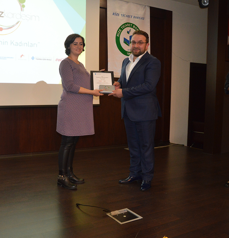 Rize Ticaret Borsası Yönetim Kurulu Başkanı Mehmet Erdoğan, TOBB Rize Kadın Girişimciler Kurulu Başkanı Zühre Kavuncuoğlu Kazancı, Coca-Cola Türkiye Kurumsal İlişkiler Müdürü Tülin Kara Özger ve Boğaziçi Üniversitesi Yaşamboyu Eğitim Merkezi Kurumsal Sosyal Sorumluluk Projeleri Direktörü Dr. Işıl Keskin Şahan’ın katılımıyla gerçekleşen etkinlikte eğitimleri tamamlayan 76 kadın sertifikasını aldı.