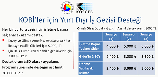 Konu ile ilgili detaylı bilgiye ''https://www.tobb.org.tr/KobiArastirma/Sayfalar/YurtdisiIsGezisiDestegi.php'', linkinden ulaşabilirsiniz.