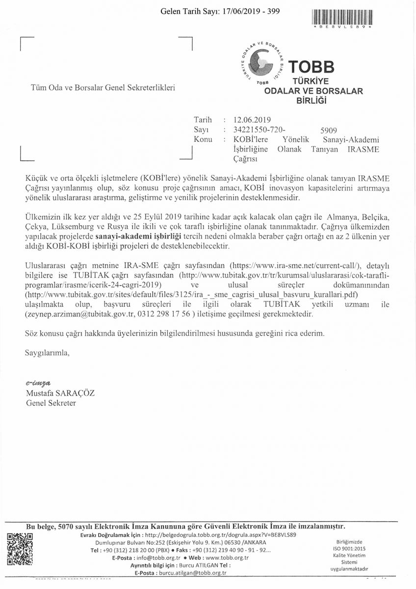 KOBİ'LERE YÖNELİK SANAYI-AKADEMİ İŞBİRLİĞİ OLANAK TANIYAN IRASME ÇAĞRISI