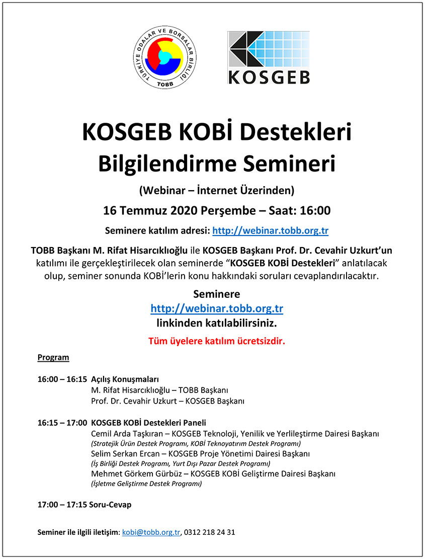 KOSGEB KOBİ DESTEKLERİ BİLGİLENDİRME WEBİNARI