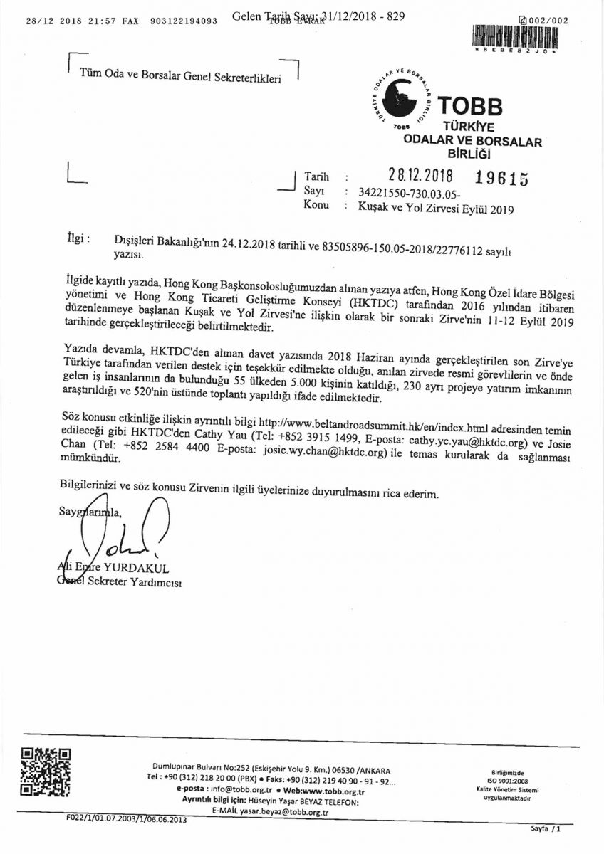 KUŞAK VE YOL ZİRVESİ EYLÜL 2019