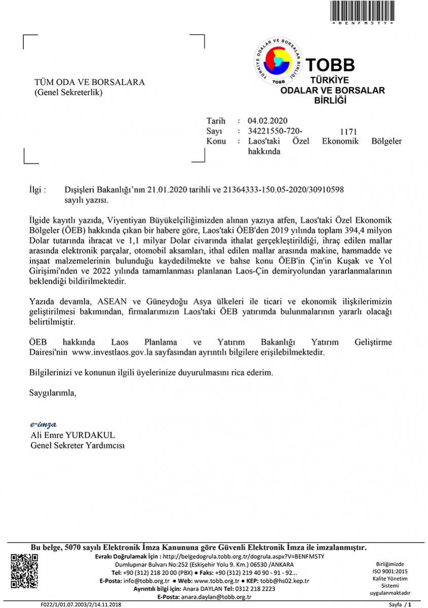 LAOS'TAKİ ÖZEL EKONOMİK BÖLGELER HAKKINDA DUYURU