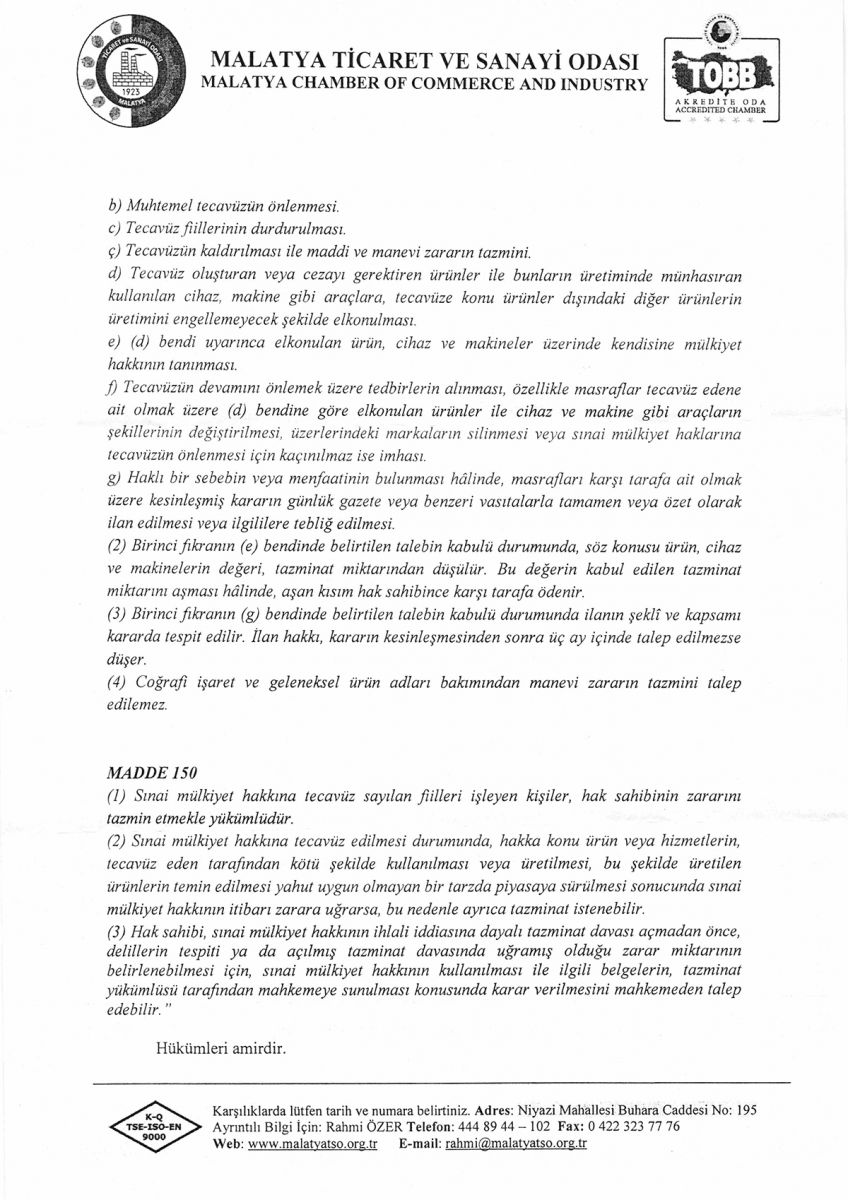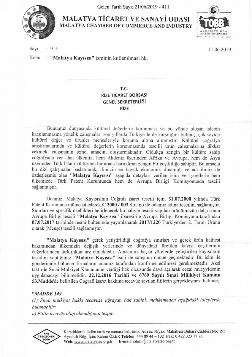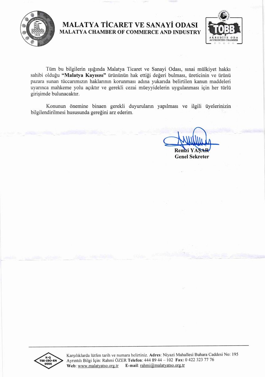 MALATYA KAYISISI İSMİNİN KULLANILMASI HAKKINDA