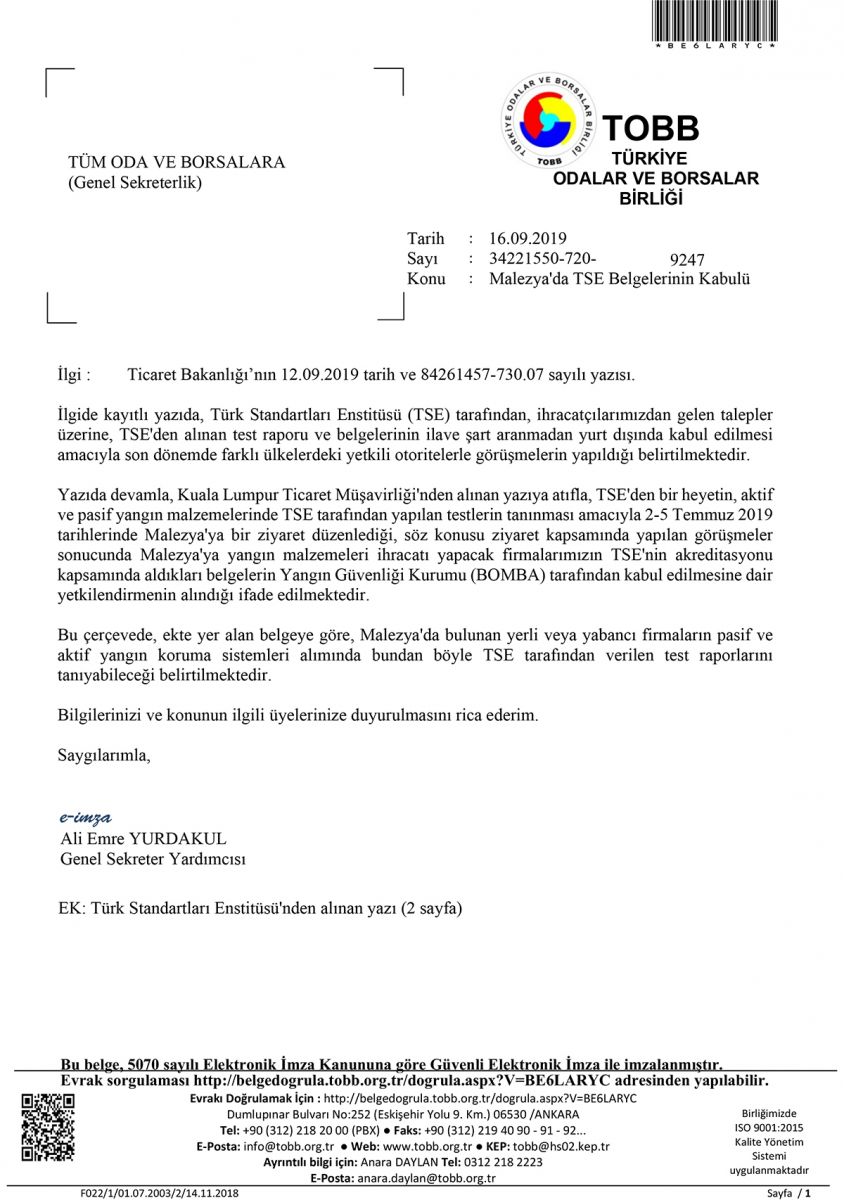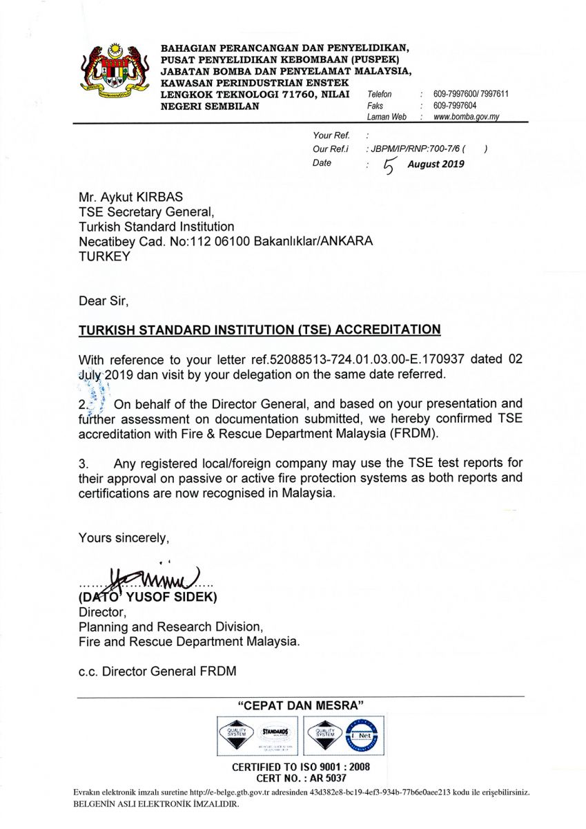 MALEZYA'DA TSE BELGELERİNİN KABULÜ