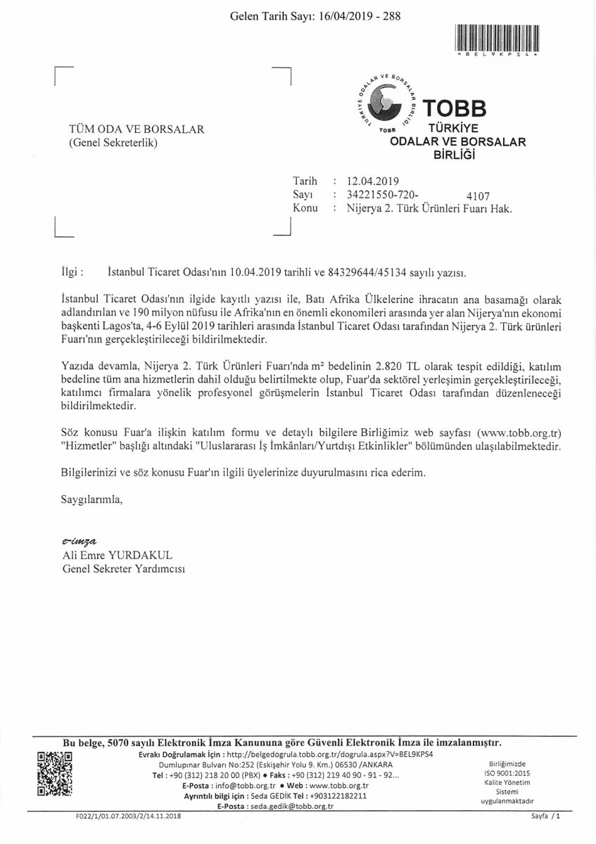 NİJERYA 2. TÜRK ÜRÜNLERİ FUARI HK.