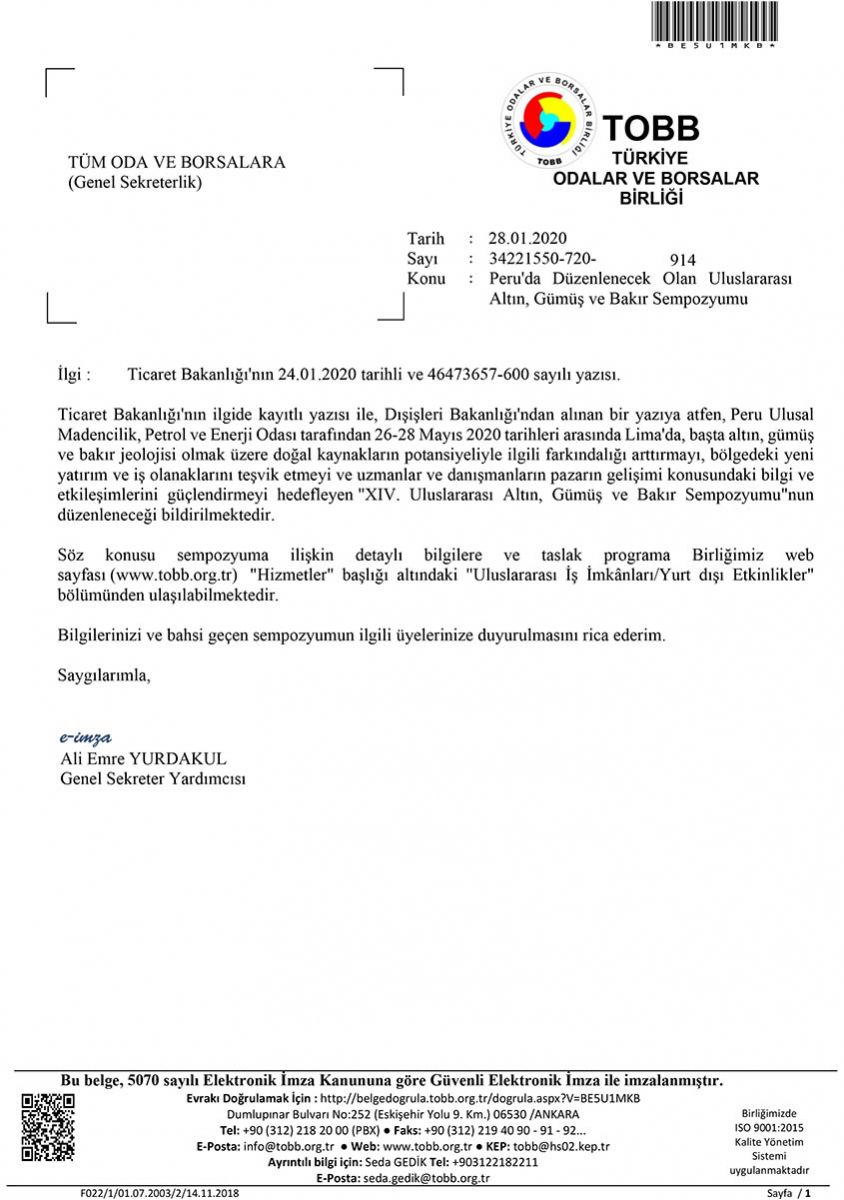 PERU'DA DÜZENLENECEK OLAN ULUSLARARASI ALTIN, GÜMÜŞ VE BAKIR SEMPOZYUMU
