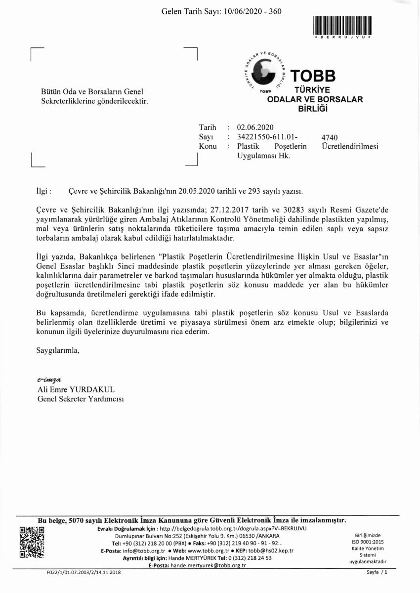 PLASTİK POŞETLERİN ÜCRETLENDİRİLMESİ UYGULAMASI