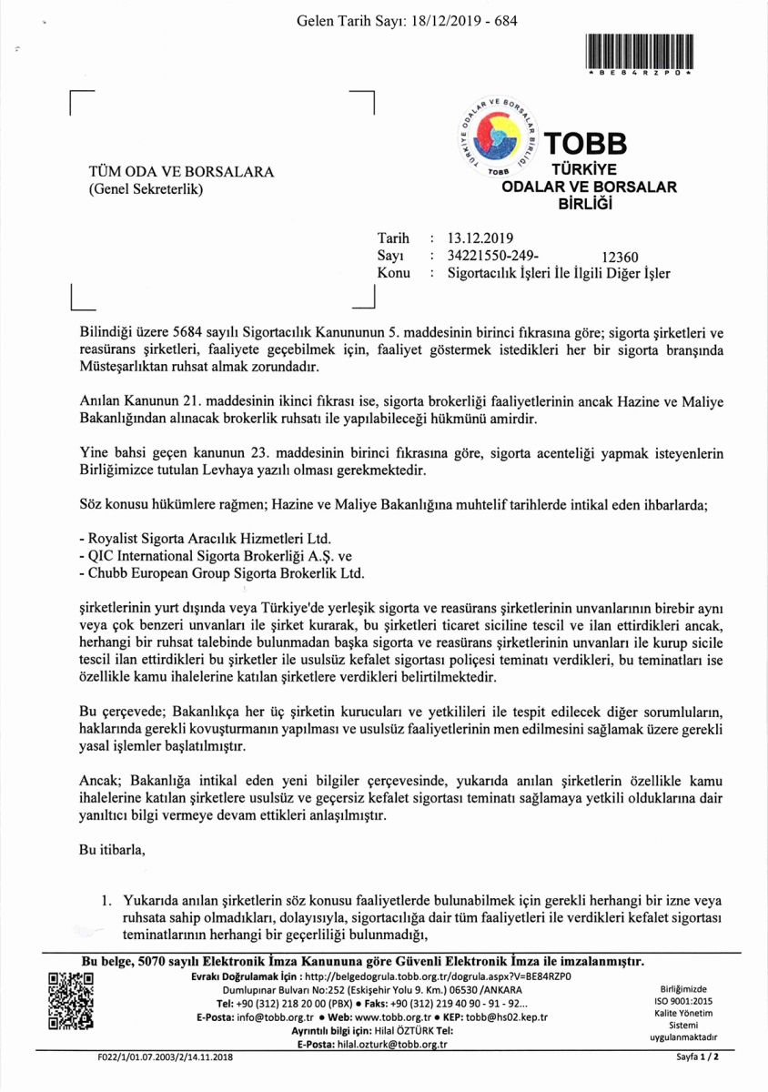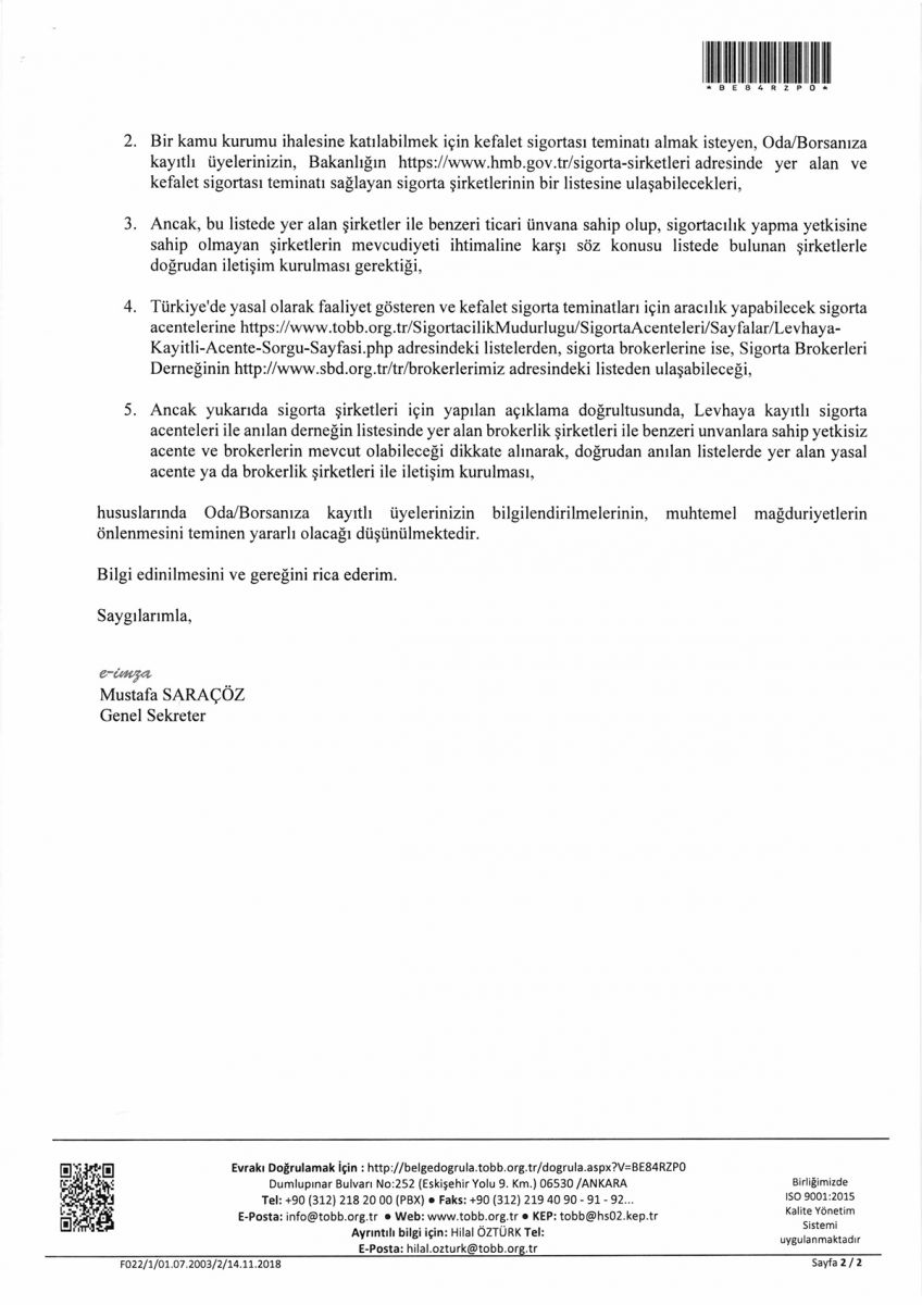 SİGORTACILIK İŞLERİ İLE İLGİLİ DİĞER İŞLER