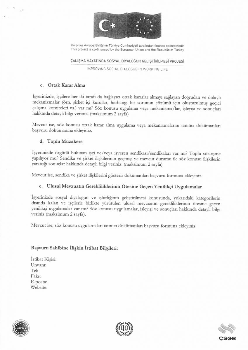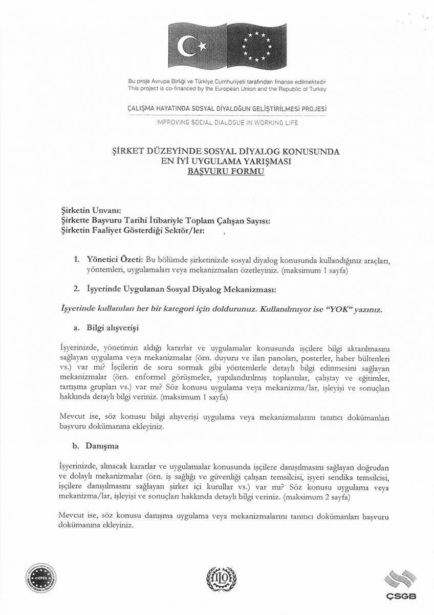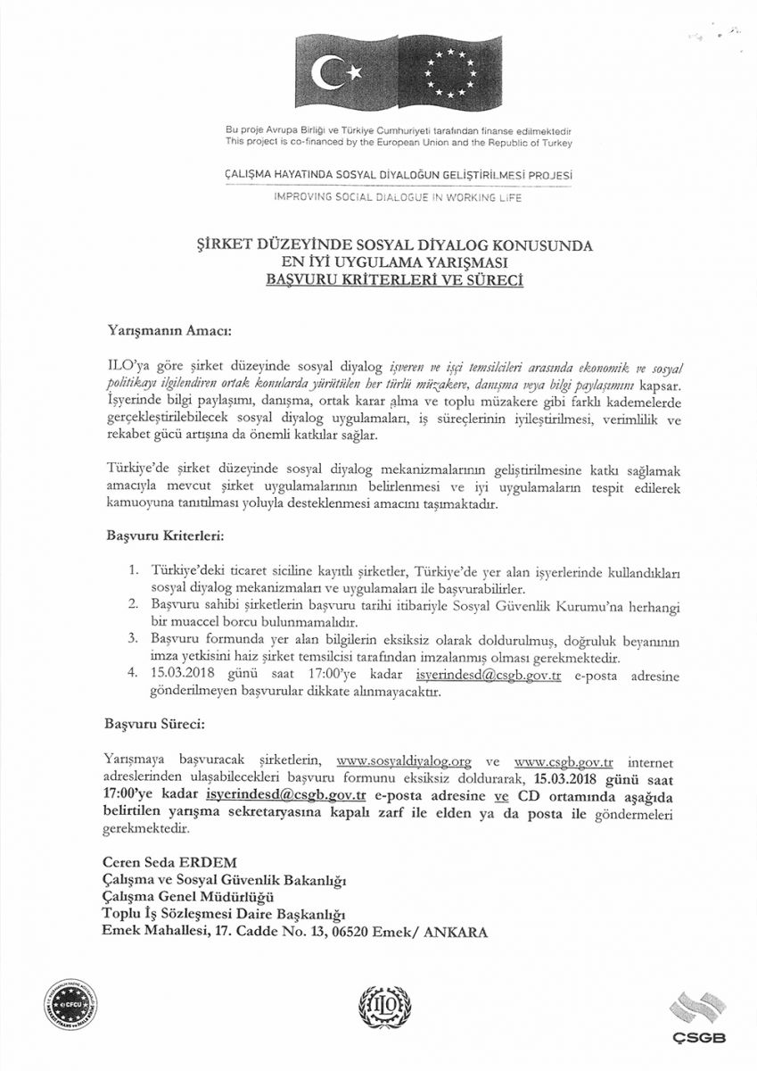 ŞİRKET DÜZEYİNDE SOSYAL DİYALOG EN İYİ UYGULAMA YARIŞMASI