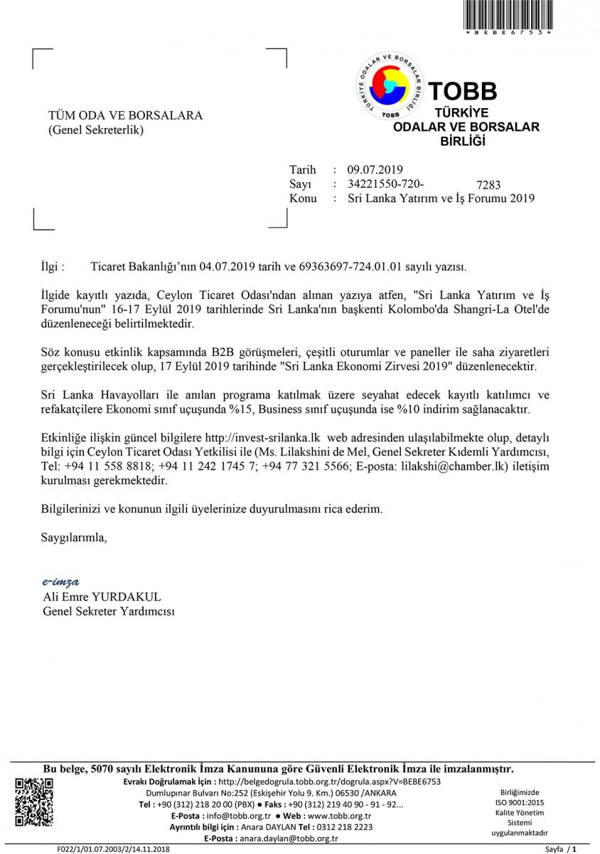 SRİ LANKA YATIRIM VE İŞ FORUMU 2019