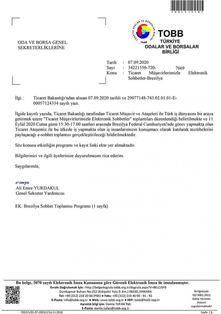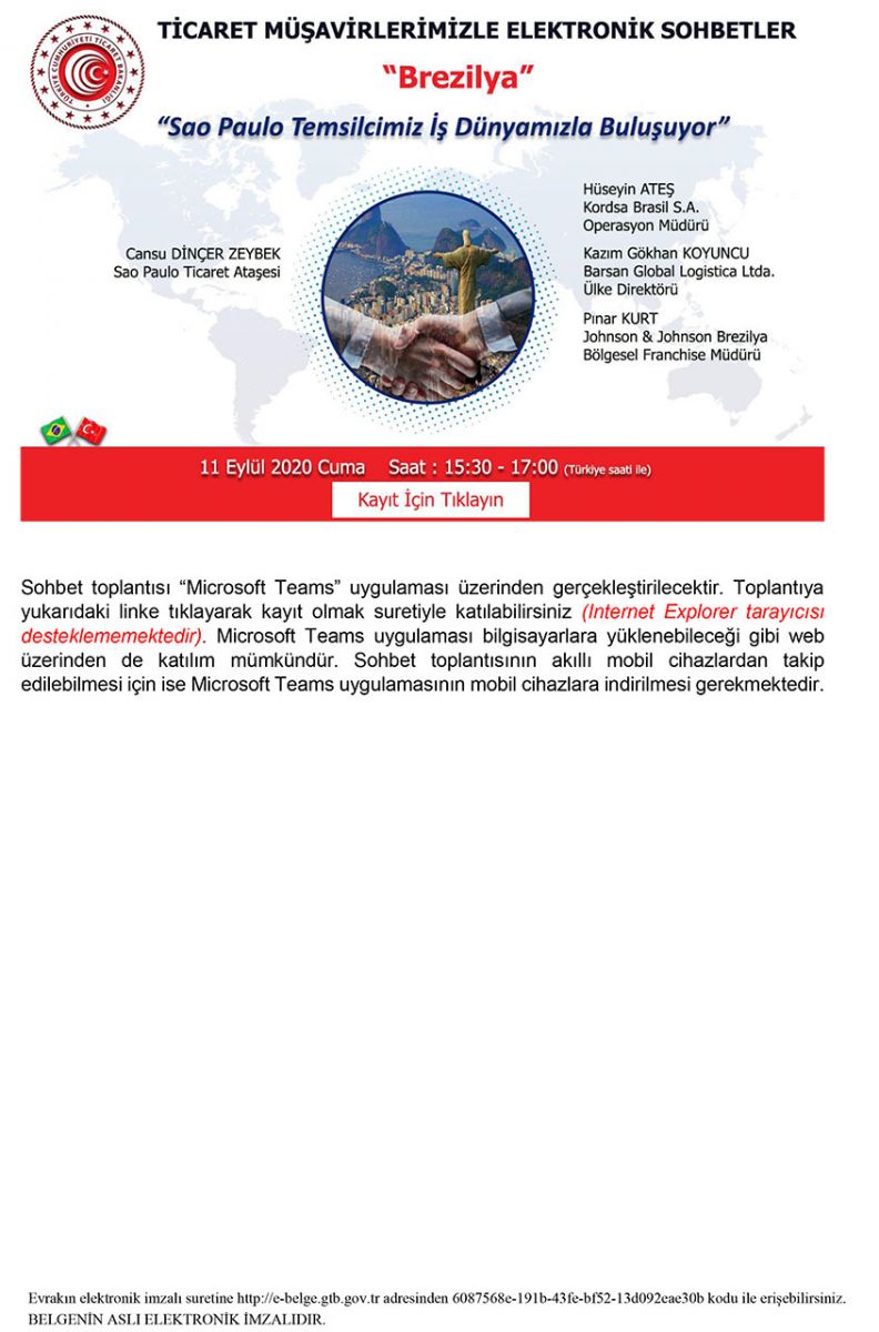 TİCARET MÜŞAVİRLERİMİZLE ELEKTRONİK SOHBETLER-BREZİLYA