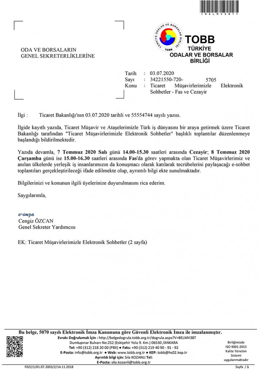 TİCARET MÜŞAVİRLERİMİZLE ELEKTRONİK SOHBETLER - FAS VE CEZAYİR