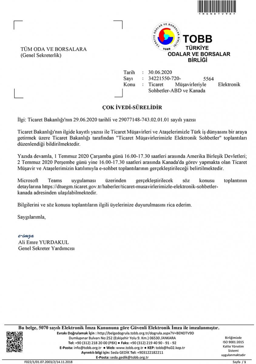 Ticaret Müşavirleriyle Elektronik Sohbetler-ABD ve Kanada