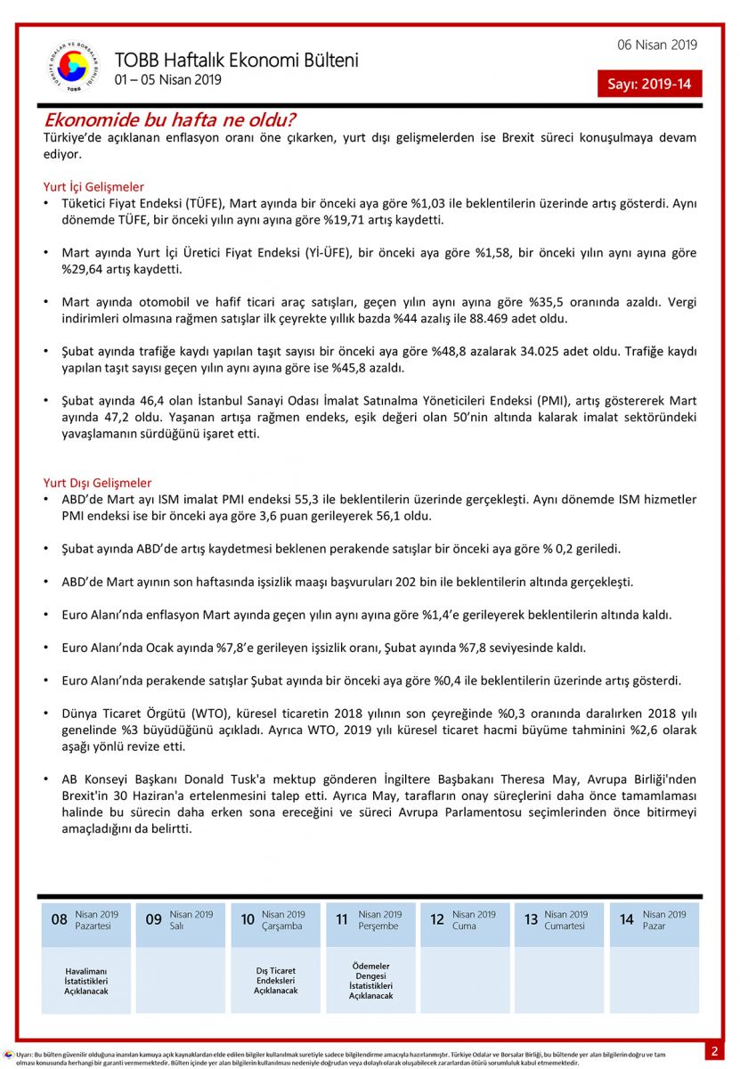TOBB HAFTALIK EKONOMİ BÜLTENİ 01 – 05 NİSAN 2019