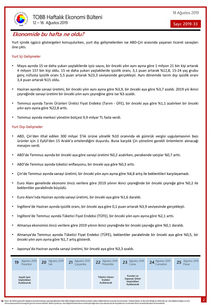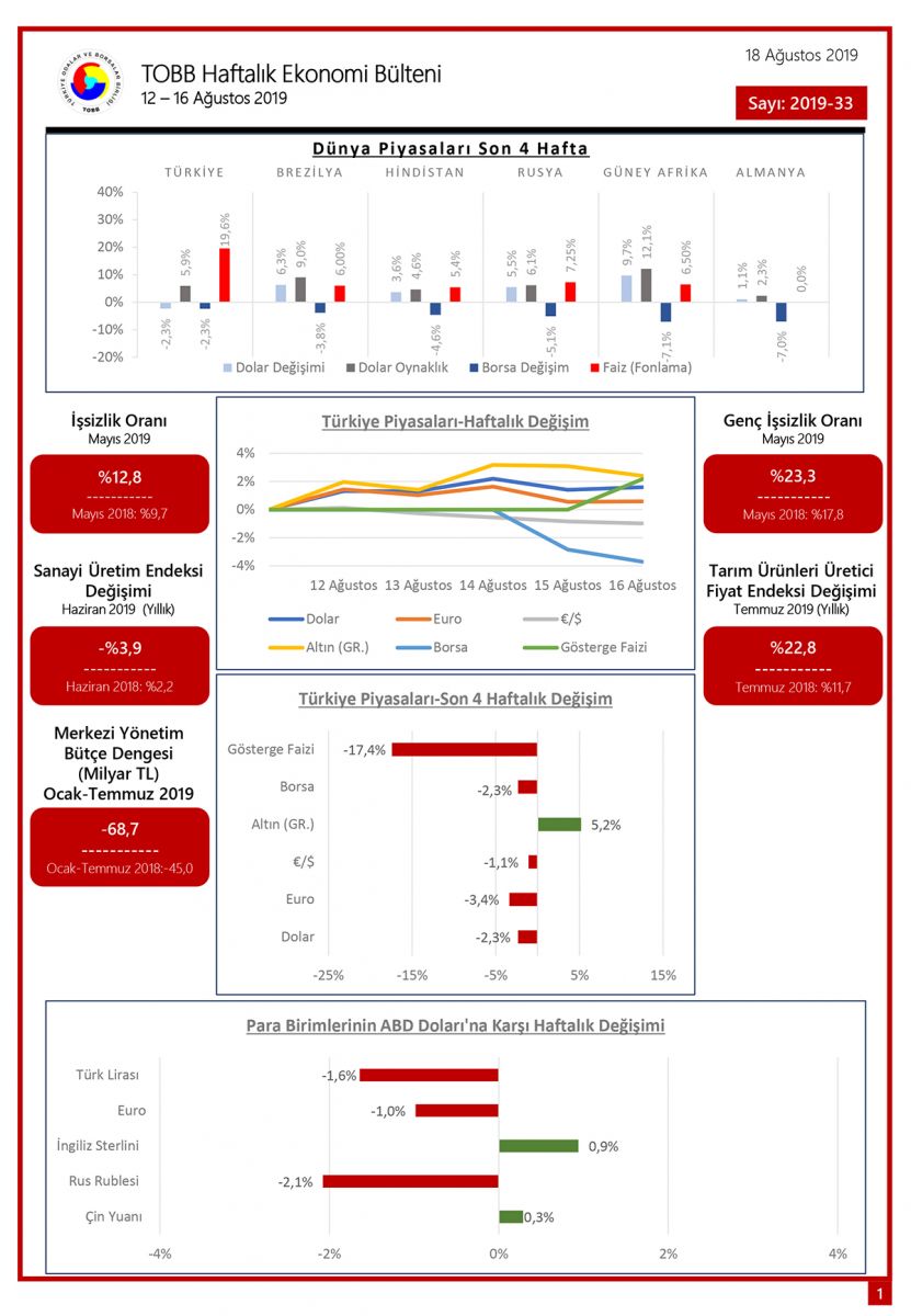 TOBB HAFTALIK EKONOMİ BÜLTENİ 12-16 AĞUSTOS 2019