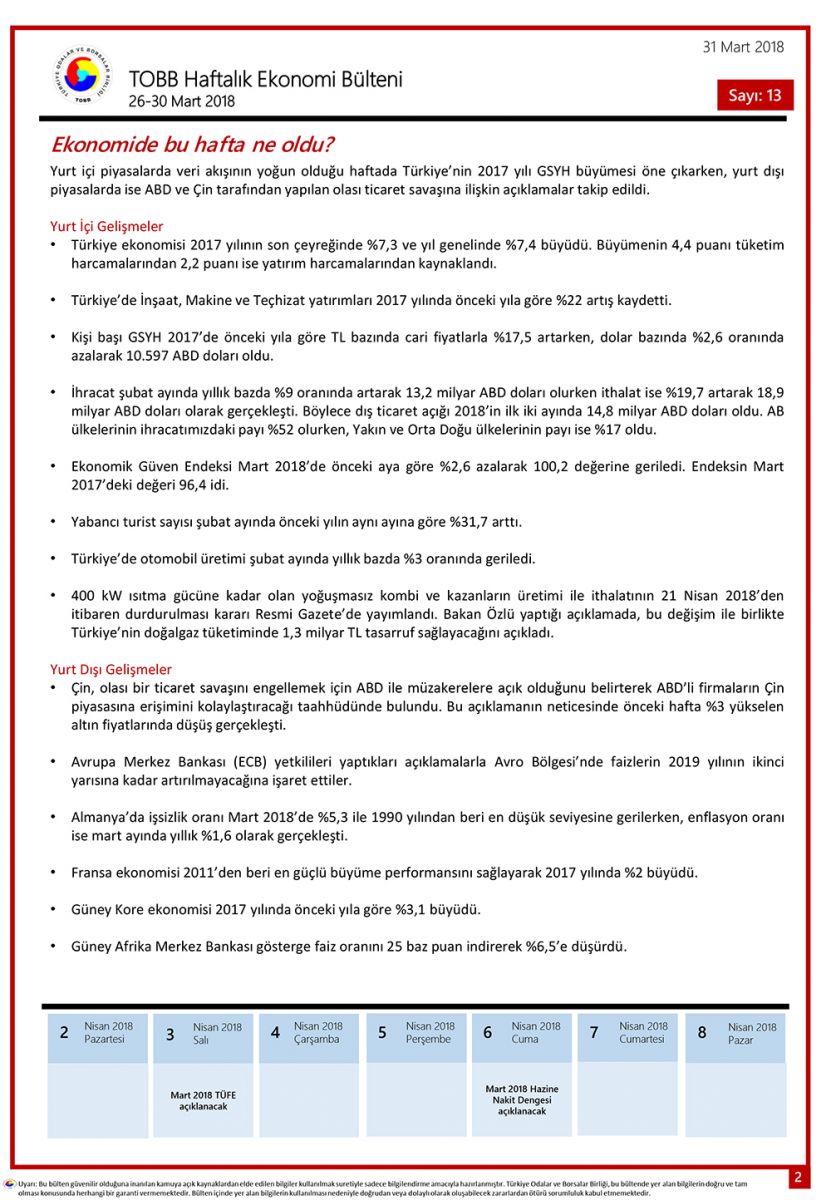 TOBB HAFTALIK EKONOMİ BÜLTENİ 13