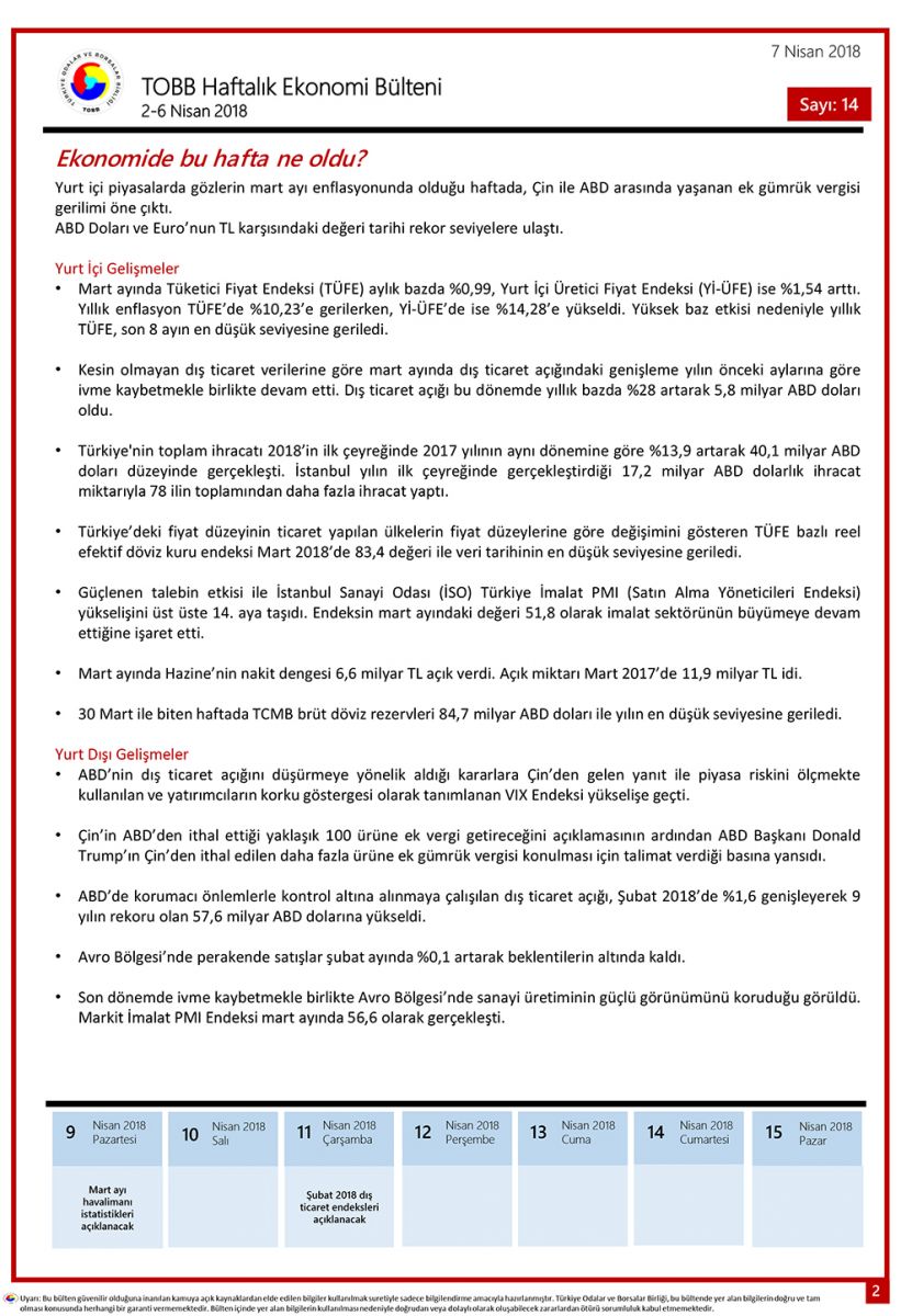 TOBB HAFTALIK EKONOMİ BÜLTENİ 14