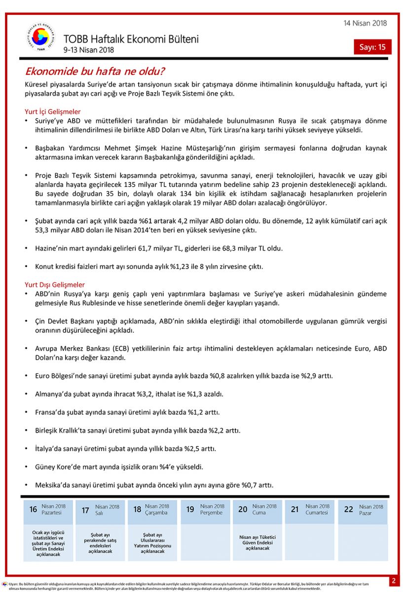 TOBB HAFTALIK EKONOMİ BÜLTENİ 15
