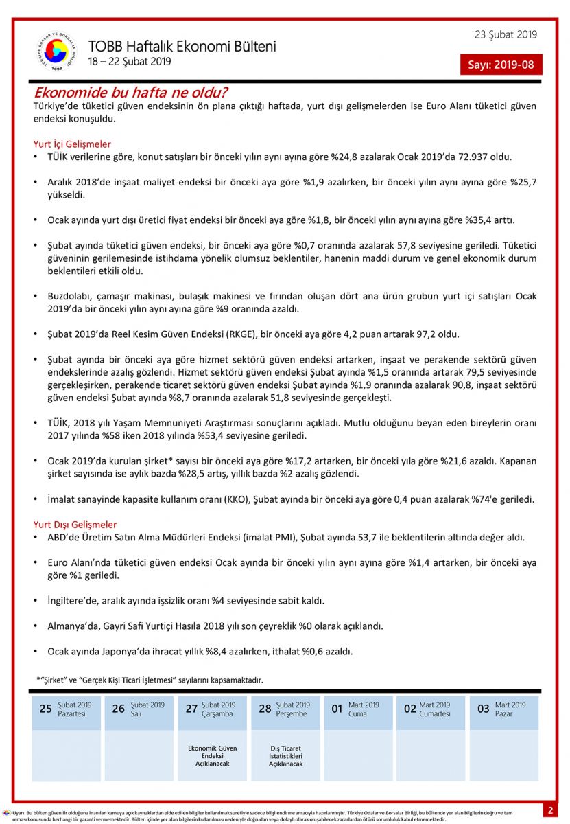 TOBB HAFTALIK EKONOMİ BÜLTENİ 18-22 ŞUBAT 2019