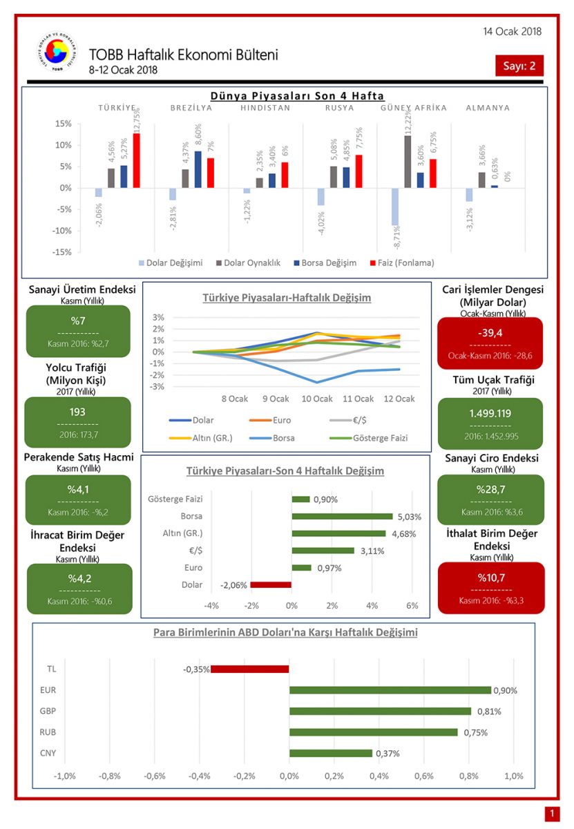 Türkiye ve dünya ekonomisiyle ilgili güncel gelişmelerin yer aldığı TOBB Haftalık Ekonomi Bülteni “istatistikler” bölümünde yayımlanmaya başlamıştır.